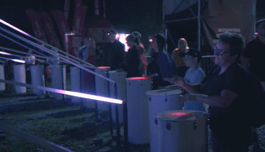 欢呼声中展示鼓掌、转呼啦圈等动作